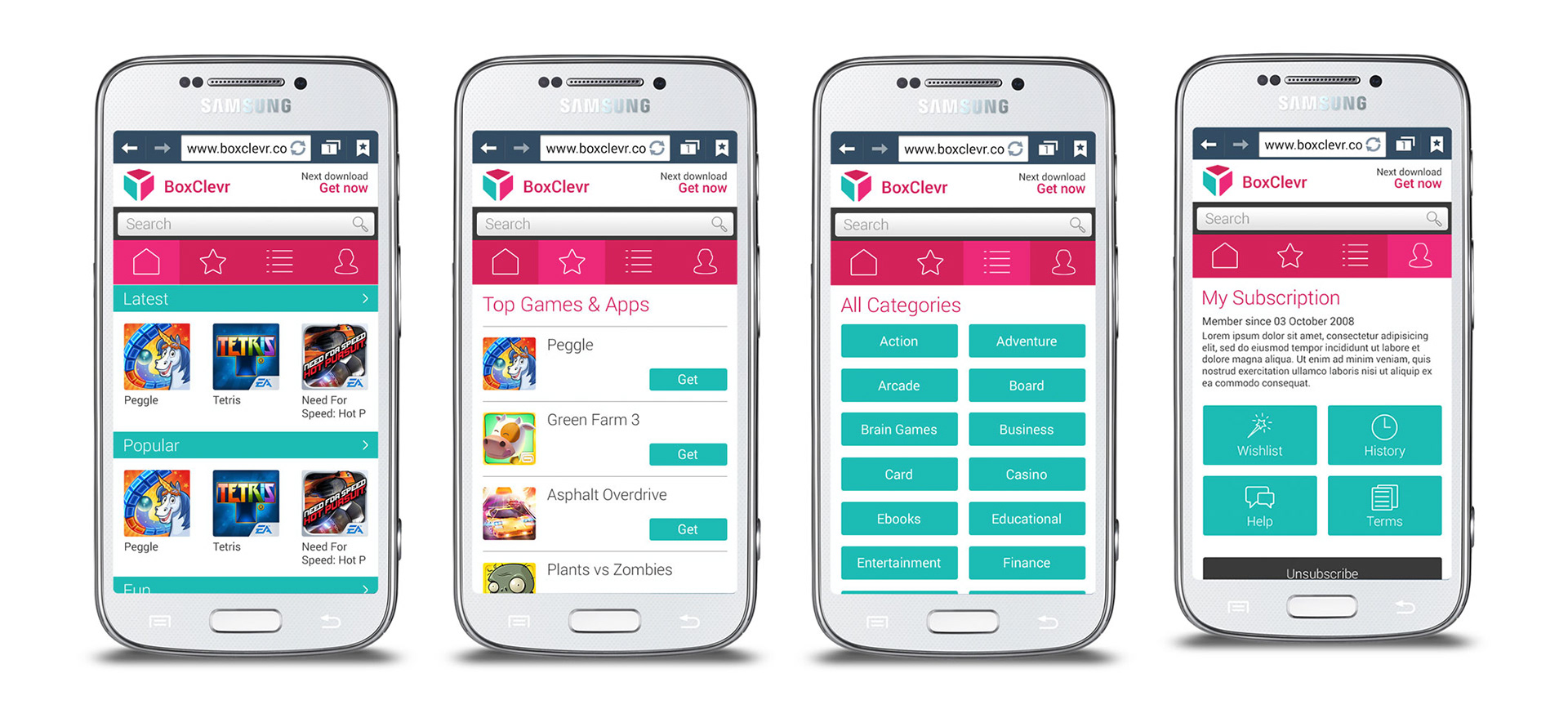 Logo, branding and store front design for mobile content subscription service. The idea was to offer subscribers access to premium mobile content for a smaller weekly fee.