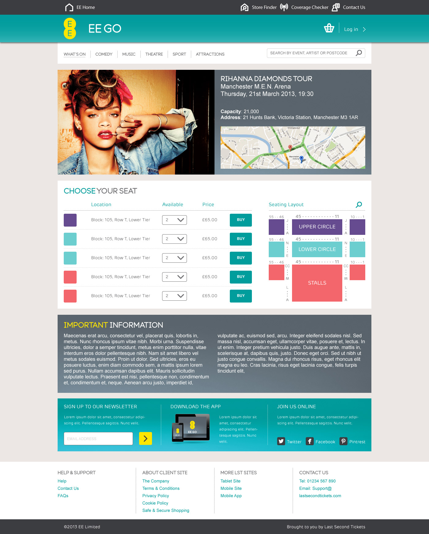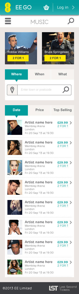 Working with EE to apply their visual identity of the the Last Second Tickets website.